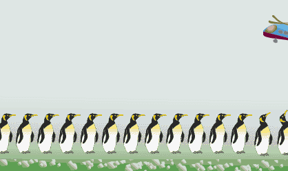 | ペンギン専門家の意見は… ペンギンは地上には敵のいない南極域に住んでいますが、トウゾクカモメなど卵やヒナをねらう鳥がいるので、上空を常に警戒しています。飛行機は気になるでしょうが、倒れますかねえ? ホームページでの反響は… ホームページ上でもこのニュースの反響は大きく、ちなみにgooなどホームページ検索サイトで「ペンギン ドミノ倒し」あるいは「penguin domino」をキーワードに検索をかけてみたら、多くの人々の心の琴線に触れた模様で、このニュースに意見を寄せるいくつものページがヒットします。日本人ってほんとにペンギン好きなんですねえ。 英国での新聞報道は… 「派遣された科学者の一人、リチャード・ストーン博士は、仰向けに倒れるという現象には懐疑的。『調査の目的はむしろ、繁殖期に繁殖場所の上を航空機が飛んだ場合,どのような影響があるのかをはっきりさせることにある』とのべた」なる一文も添えられていました。 |