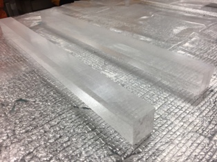長さ50cm、直径約9cmの円柱状の氷から、(下の写真のように)約3.5cm×3.5cmの氷を切り出します。