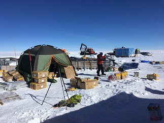 アイスコア掘削場の撤収、就寝の場となっていたテント村の