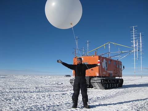 写真6:ゾンデ観測は、栗田さんと山田さんらが滞在期間中おこな