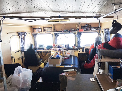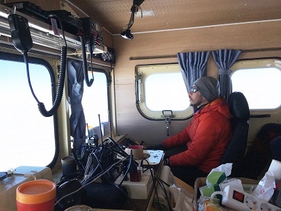 写真:米国製のレーダを設置した観測装置棚(雪上車内左側)。