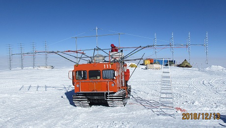 。大がかりなアンテナを雪上車に搭載する際、車両が動いたときの