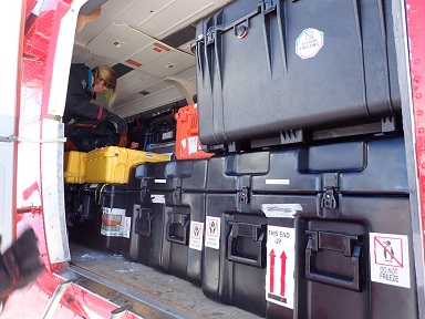 写真3:ノルウェー同行者の帰国物資の機内搭載が順次始まりまし