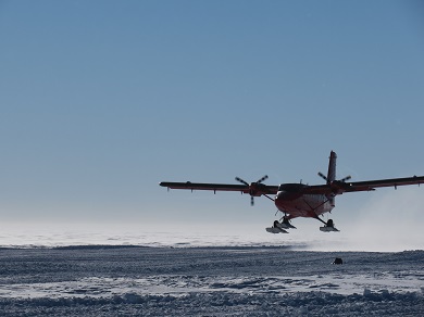 写真1:飛来し着陸するツインオッター機(撮影:岡田)